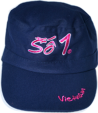 Adult Cap So 1, that means Number 1 in vietnamese language. Dark blue color fabric. Raspberry embrodery.